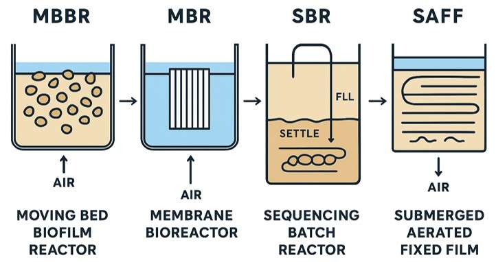 Our sewage treatment plants leverage the latest technology for superior sewage treatment.  We utilize innovative processes including Moving Bed Biofilm Reactor (MBBR), Membrane Bioreactor (MBR), Sequencing Batch Reactor (SBR), and Extended Aeration & Submerged Aerated Fixed Film (SAFF).  Besides designing and delivering new sewage treatment plants, Cubictech also modernizes existing systems by integrating the latest technology, increasing capacity, and improving efficiency to meet evolving needs and requirements. We also supply essential chemical consumables to support the ongoing and reliable operation of your sewage treatment plant.